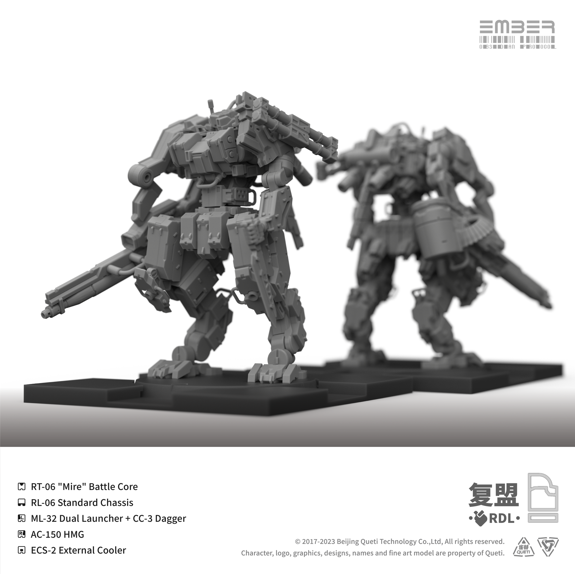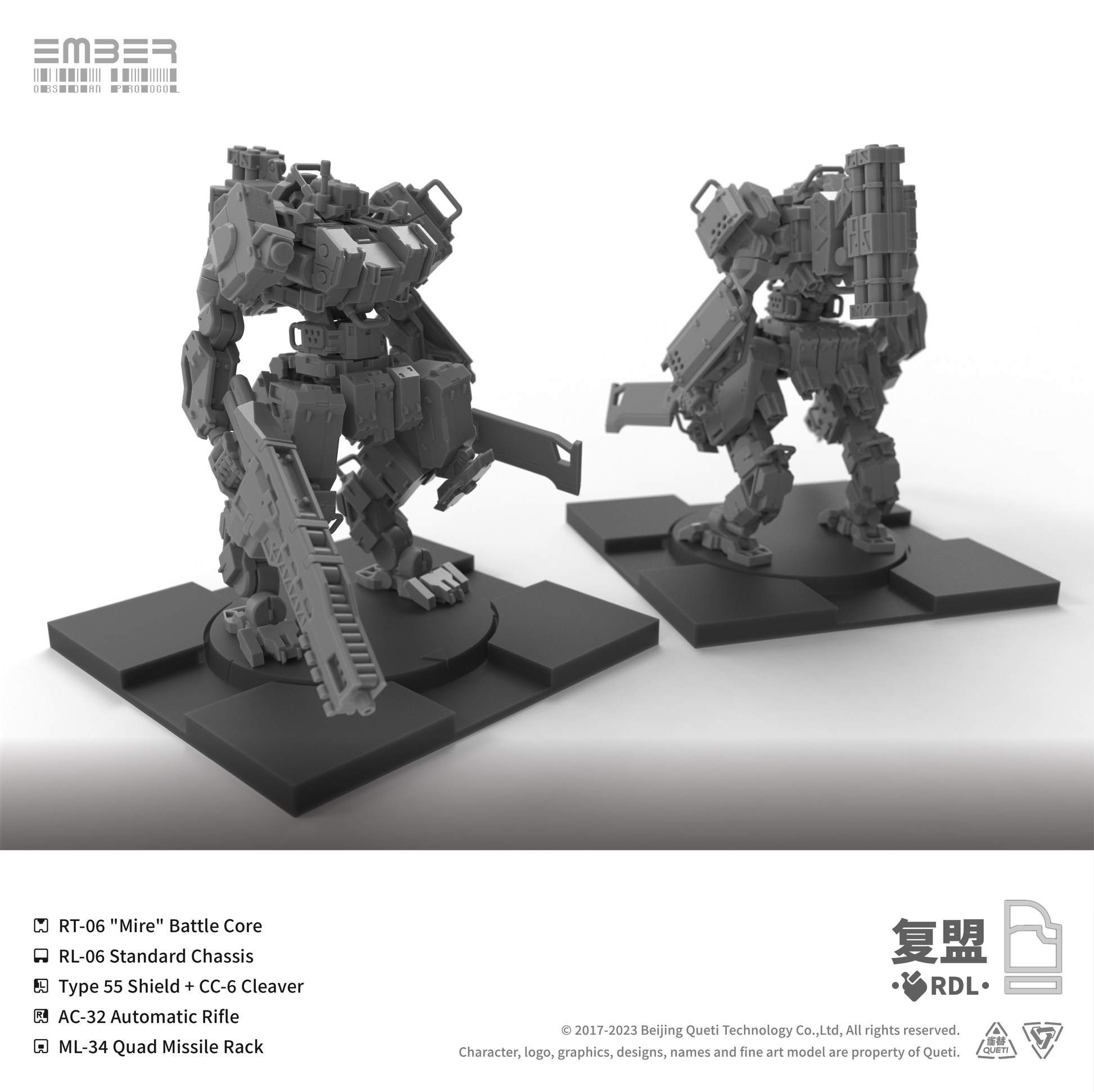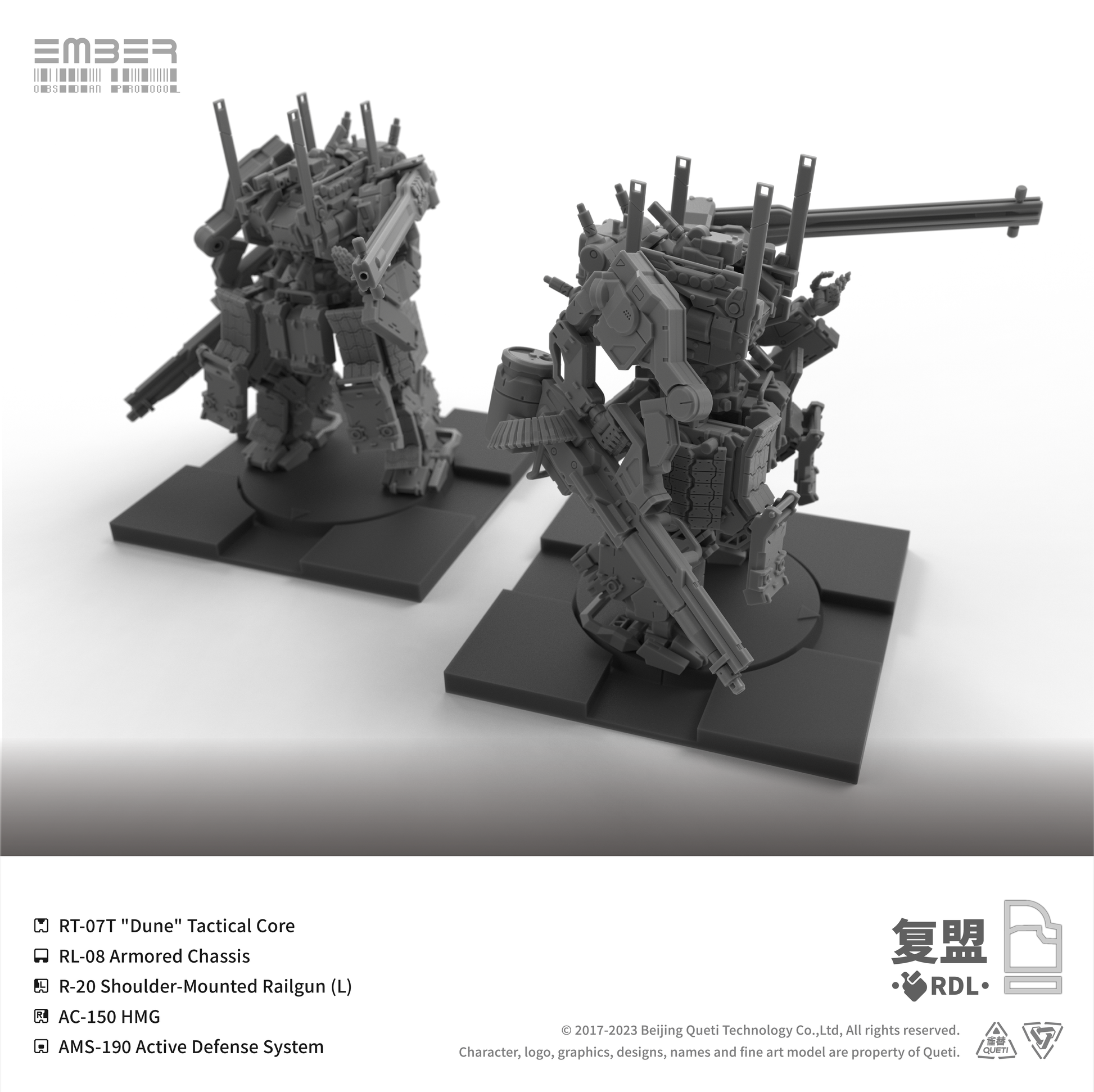 This RDL Core box combines 5 mechs, 2 Tactical Drones, and a large number of interchangeable modular parts, offering a wide selection of weapons from fully automatic gunnery stations to heavy machine guns, as well as an assortment of auxiliary backpacks and cores that can give your team a tactical advantage.