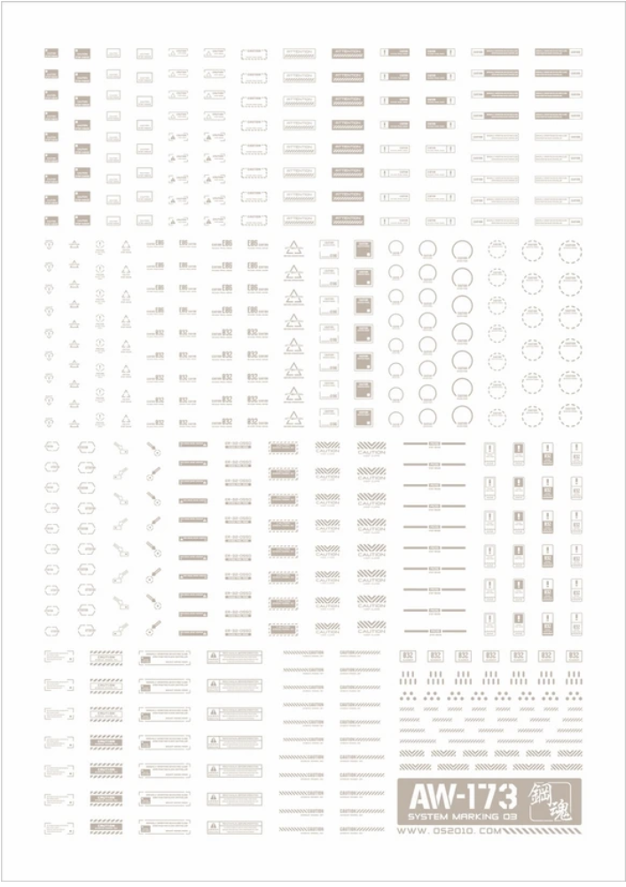 Madworks AW-173 Waterslide Decals: System Markings 03 (Light Gray)