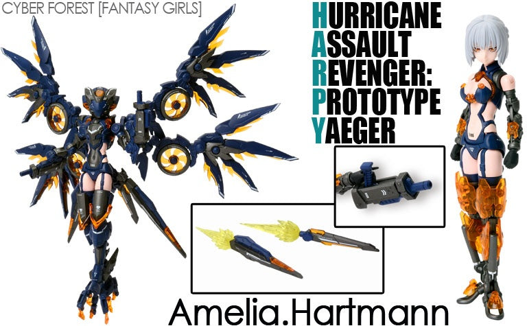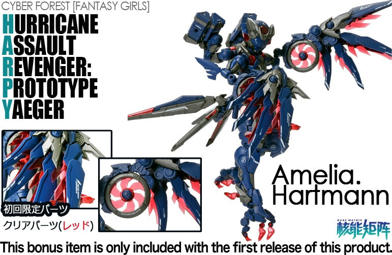 Amelia.Hartmann 是 Doyusha 的 NUKE MATRIX 美少女人物套件系列中的最新作品!她的机甲单位被称为HARPY(飓风突击复仇者原型耶格尔),阿米莉亚配备了两挺机枪和四个导弹发射器,如果你喜欢的话可以组合在一起;她还拥有充满活力感的效果部件。今天就订购她作为您自己的收藏吧!
