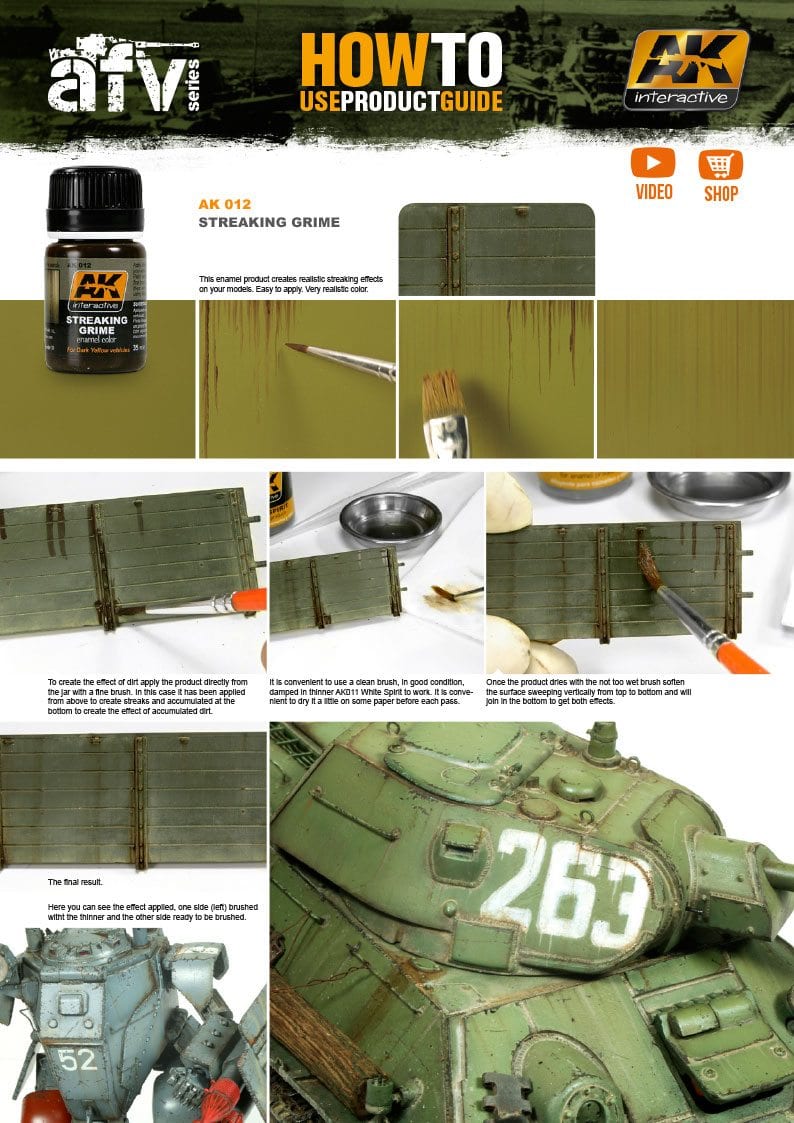用于造型的珐琅型条纹。使用这种肮脏的颜色轻松创建逼真的污垢条纹和污垢效果。这种搪瓷产品可以在您的模型上产生逼真的条纹污垢效果。易于申请。非常逼真的色彩。使用前摇匀。用细尖刷从上部到两侧以不规则的垂直线涂抹条纹,让油漆干燥约 10 分钟。接下来,用沾有白酒的扁平刷子轻轻擦拭先前涂抹的条纹,以柔化效果并创造自然的外观。使用这种颜色,可以轻松模仿深黄色或灰色油漆中的条纹污垢。使用细刷子画出线条,然后使用蘸有白酒的厚平刷子将线条涂掉。
