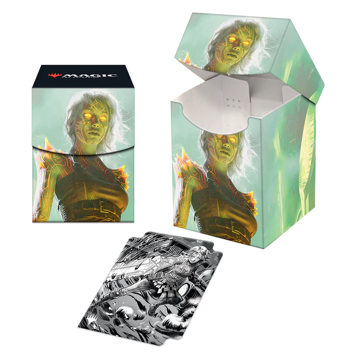 100+ Deck Box ® 卡牌存储容器采用来自 Magic: The Gathering 的充满活力的全彩艺术品,并包括一个牌组分隔板。采用档案安全、非 PVC、硬质聚丙烯材料制成,您可以放心存储多达 100 张双套卡片。自锁盖可让您的卡在不使用时安全存放,同时也方便取用。尺寸适合标准尺寸的交易卡。