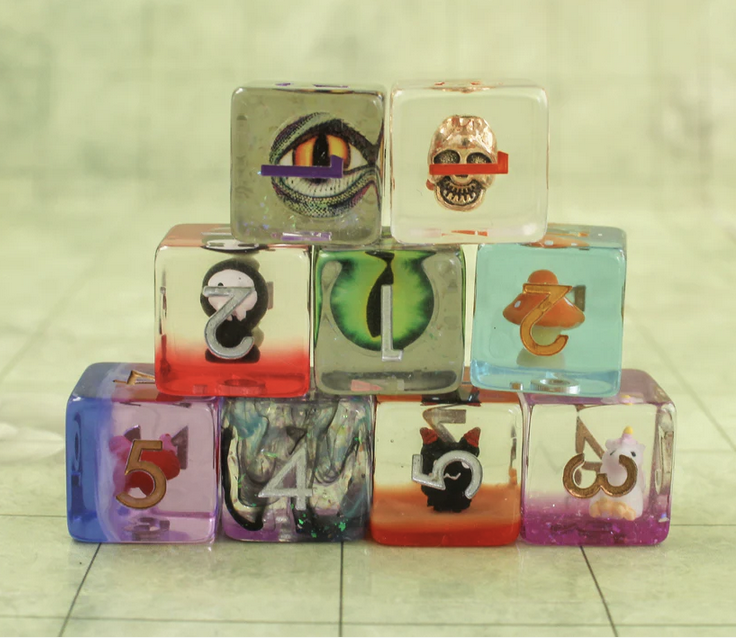 - 这些骰子尺寸约为 16 毫米 5/8 英寸。