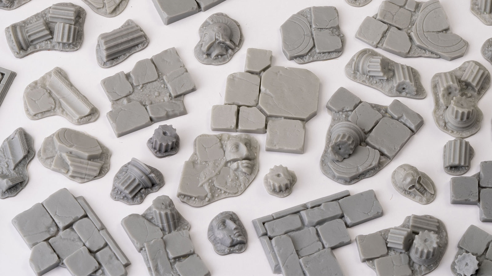 寺庙碎片是一座已被毁坏的寺庙的建筑元素的按比例碎片。破碎的柱子、破碎的人行道和雕塑、小片装饰饰带和雕塑面板,都具有古色古香的经典风味,非常适合您的古代世界重建和传奇。