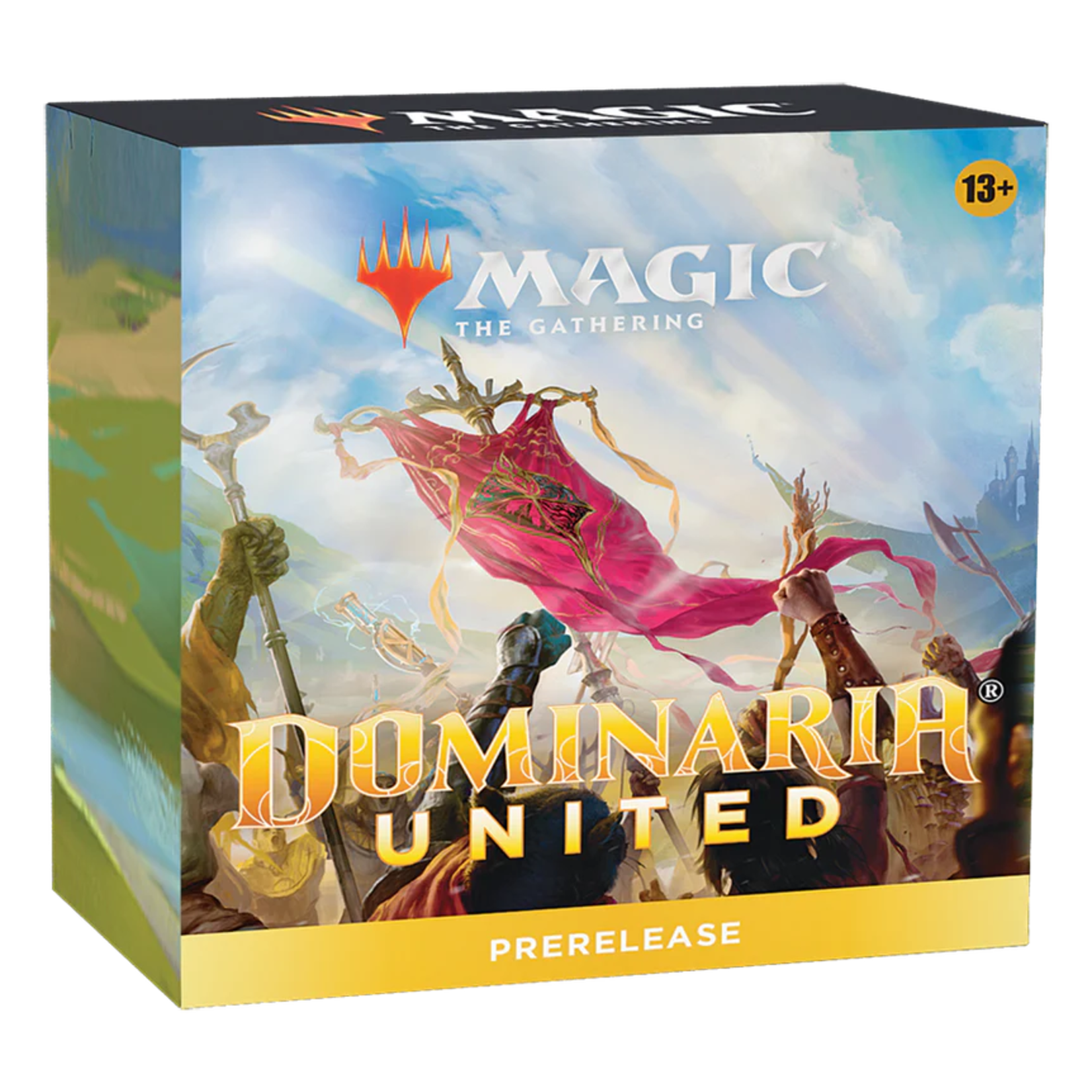 这 多明纳里亚联 售前包包含 6 个 多明纳里亚联 选秀助推器、1 张贴有箔印的稀有或神话稀有卡、1 张 MTG Arena 代码卡(仅在部分地区提供)、1 个套牌盒和 1 个 Spindown 骰子。