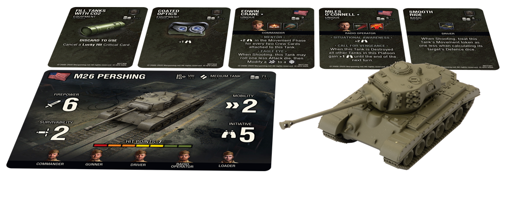 M26潘兴因其黑豹杀手而被人们所铭记,而作为一款中型坦克,它的一切都是为了进攻,重新掷出空白的攻击骰子。与 Firepower 6 相结合,M26 并不需要太多升级。我们要说的是,它是为平稳驾驶而设计的(这可以让你减少射击时移动的惩罚),想要充分利用这辆坦克的激进玩家应该看看指挥官爱德华·克莱恩( Edward Crane) ,他会给你额外的奖励坦克上每两名乘员与他的导师在移动阶段拥有主动权 技能并且如果您感到有信心,则可以让您有机会少掷一个攻击骰子,以将命中修改为致命一击,这要归功于鹰眼。